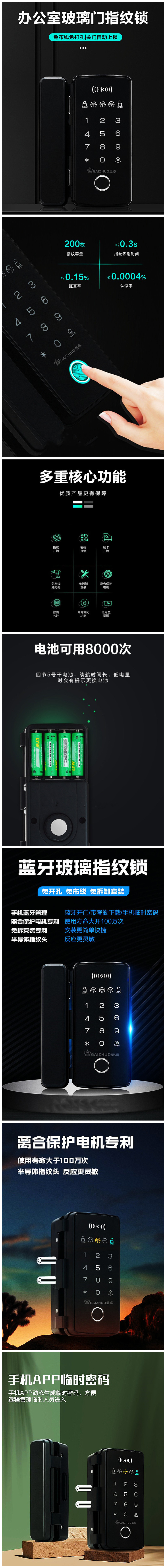 盖卓708免布线智能指纹锁免开孔