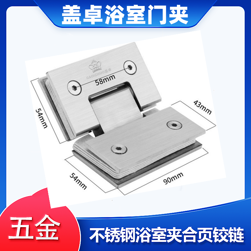 淋浴房卫生间玻璃门夹合页铰链90度单(3孔)